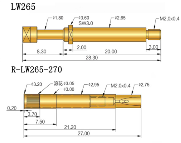 彈簧材料:一般采用高強(qiáng)度的不銹鋼彈簧或鈹銅彈簧,具有良好的彈性和疲勞壽命,能夠提供穩(wěn)定的彈力,確保探針與被測(cè)物體之間的可靠接觸。
