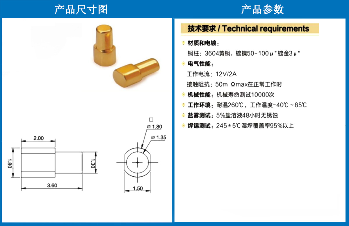 產(chǎn)品型號:1.8*3.6側焊銅柱