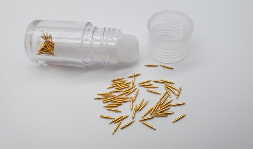 隨著社會的不斷科技化,人們的生活水平也不斷的提高,手機、電腦、汽車、智能手表等也不斷的普及,對探針的需求也越來越大! 探針是電測試的接觸媒介,為高端精密型電子五金元器件。它在各個領域都有應用,例如在醫(yī)療、航空航天、生物、計算機等領域都有的應用。而不同型號的探針,所用的材質及價格也會不同。探針的材質主要有鈹銅、磷銅、黃銅、SK4、等,今天主要給大家講解一下探針表面為什么要進行鍍金處理? 簡單來說,鍍金就是為了防止銅生銹,生銹之后產(chǎn)生的銅綠會增加電阻,探針的穩(wěn)定性及使用功能也會受到影響。 一、鍍金的好處: 1.鍍金層延展性好、易拋光、耐高溫,具有很好的抗變色性能。在銀層上鍍金可以防止銀的變色;金合金鍍層可呈現(xiàn)多種色調,故常用作裝飾性鍍層,如鍍首飾、鐘表零件、藝術品等。 2.鍍金具有較低的接觸電阻、導電性能良好、易于焊接、耐腐蝕性強、并具有一定的耐磨性(指硬金),因而在精密儀器儀表、