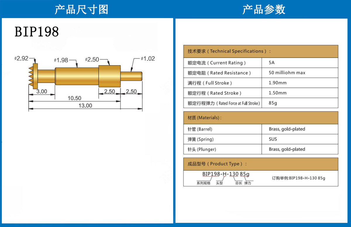 BIP198 當(dāng)前位置:首頁 » POGO PIN充電彈簧頂針